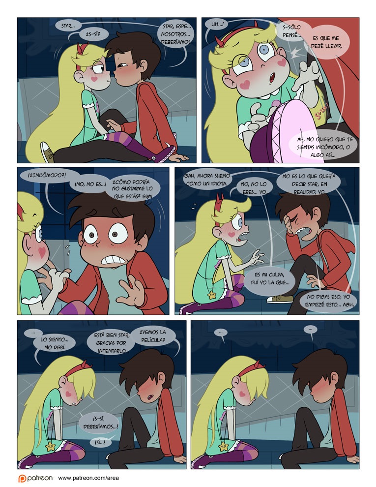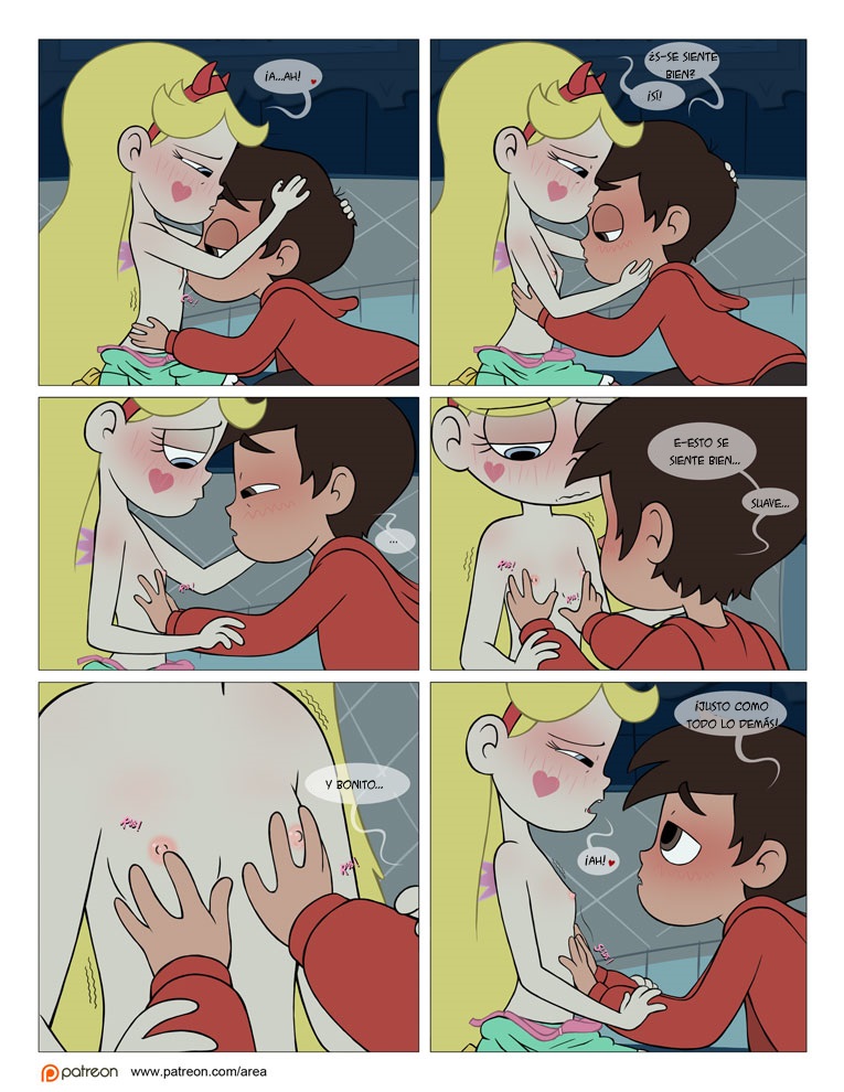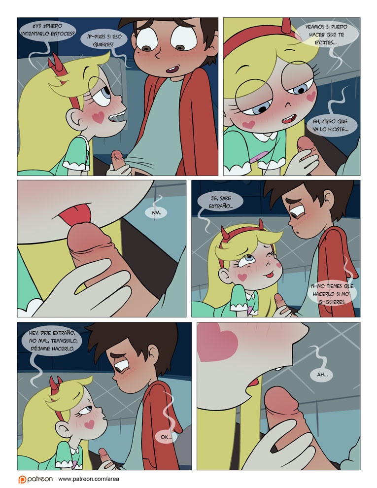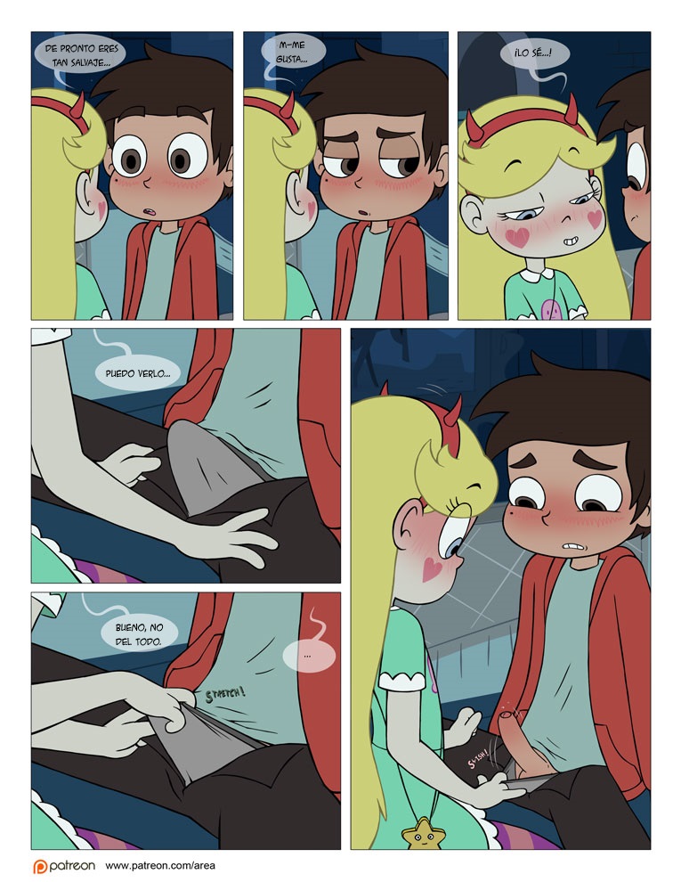 Star va a la tierra en busca de algo más que de diversión en realidad desde el principio se ha fijado en marco, y una de las primeras noches donde ellos dos se queden solos Star quiere introducir a Marco en el mundo del sexo. Primero de todo empieza la cosa con unos dulces besitos, pero pronto estar busca entre los pantalones del chico y encuentra una buena tranca. En este cómic XXX podemos ver como tiene sexo oral, como le comen el coño y como la penetran gasta que ella se cansa de él y le deja tirado con la verga bien tiesa.