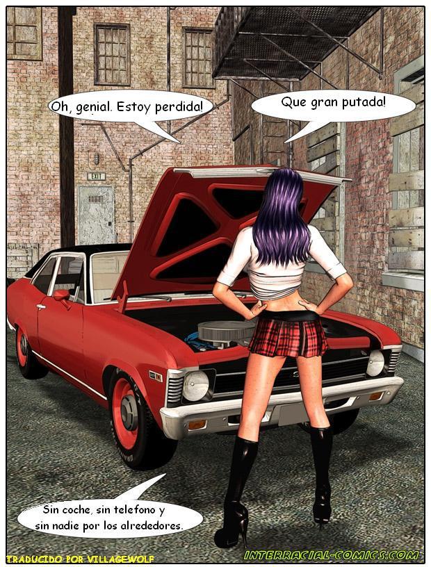 Esta colegiala que se dirige a las clases en su coche y se le estropea, pero de repente aparece un hombre de color negro ayudarla y la dice que la bateria del coche esta rota. Para esperar a que se la arreglen la invita a un café y de repente el negro se saca su … Ver comic porno …